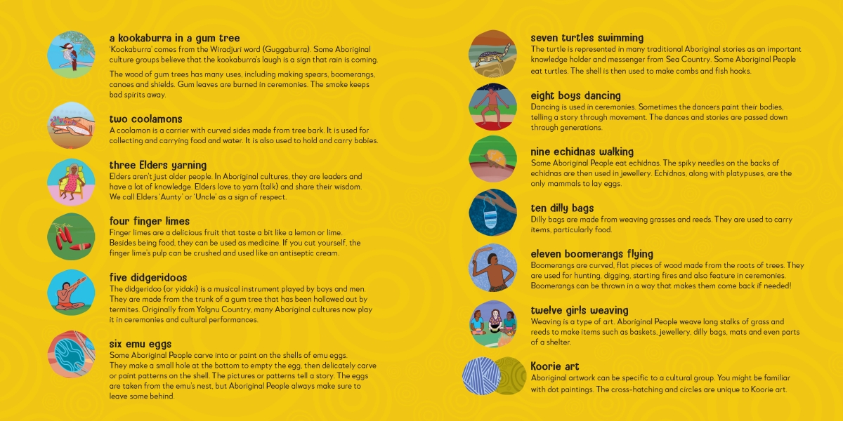 12 Days of Bush Christmas is a children's picture book that adapts the lyrics of yuletide classic 'The Twelve Days of Christmas' with a festive Koorie spin.
