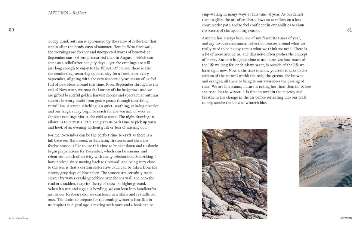 The patterns are split into the four seasons, and each section will open with a delightful description of the sights and sounds of that time of year, providing plentiful inspiration for the projects ahead.