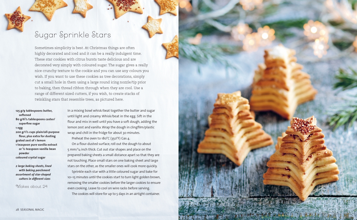 Decoration hints and tips are followed by recipes for more than 60 different cookies, from Jolly Santas, Coconut Snowballs, Frosted Fir Cones and Hot Chocolate Cookie Cups to Reindeer Pretzel Cookies and Meringue Snowmen.