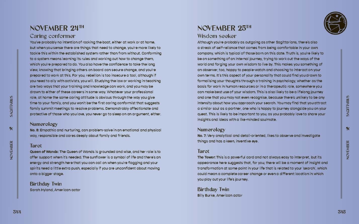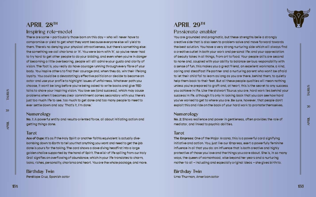 Each day of the year is packed with unique astrological insights and fascinating numerological facts, handpicked for that special day. Uncover how you tackle life's twists and turns, spot your natural quirks, and discover new sides of yourself as you grow. See how you vibe with your nearest and dearest. The Book of Birthdays is your go-to guide for fascinating birthdate info about you, your partner, family, friends, and even your boss!