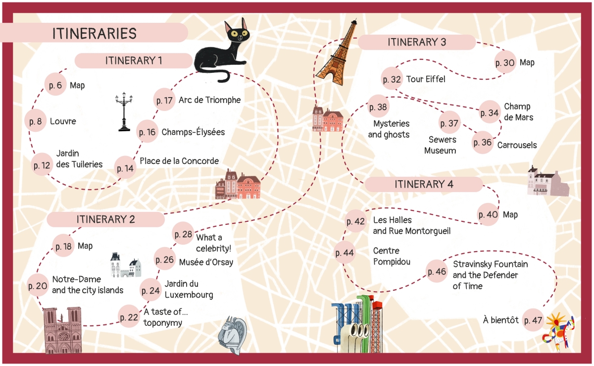 From the Eiffel Tower to Notre-Dame, from the Louvre to the Place de la Concorde, children will learn fascinating facts about Paris’s most iconic landmarks. The book is organized into different child-friendly itineraries, making it easy to follow along and discover the city step by step.
